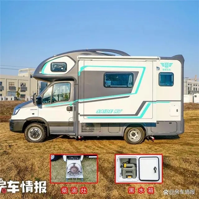 车身右侧则提供了部分生活设备,如手动遮阳棚、柴油灶、置物平台等,提升了日常使用的便利性。