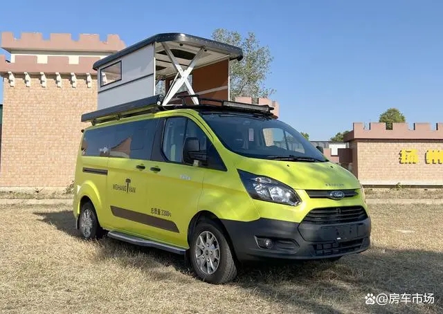 车内高度不足一直是福特新全顺车型的弱项,近期卫航房车改装了一款穿山甲房车,车顶可以升高,解决了车内空间问题,房车价格:37.8万元。