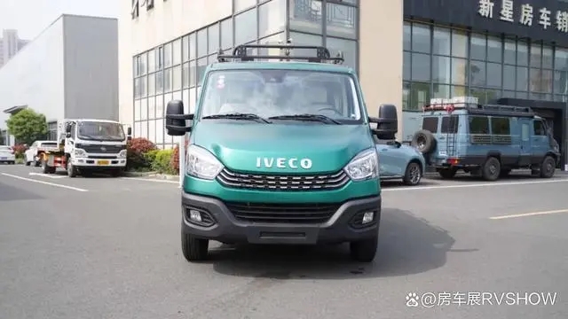 新星房车绿依维柯露营车,整车尺寸为5300x2000x2300mm,搭载依维柯短轴低顶轻客底盘打造, 动力排量可以达到3.0T,加上8AT自动挡变速箱、170匹马力、400N·m扭矩,形式起来动力非常强劲,作为一台柴油车重量只有3.5T,所以说重量还是非常轻,核载5人,蓝牌C照即可驾驶。